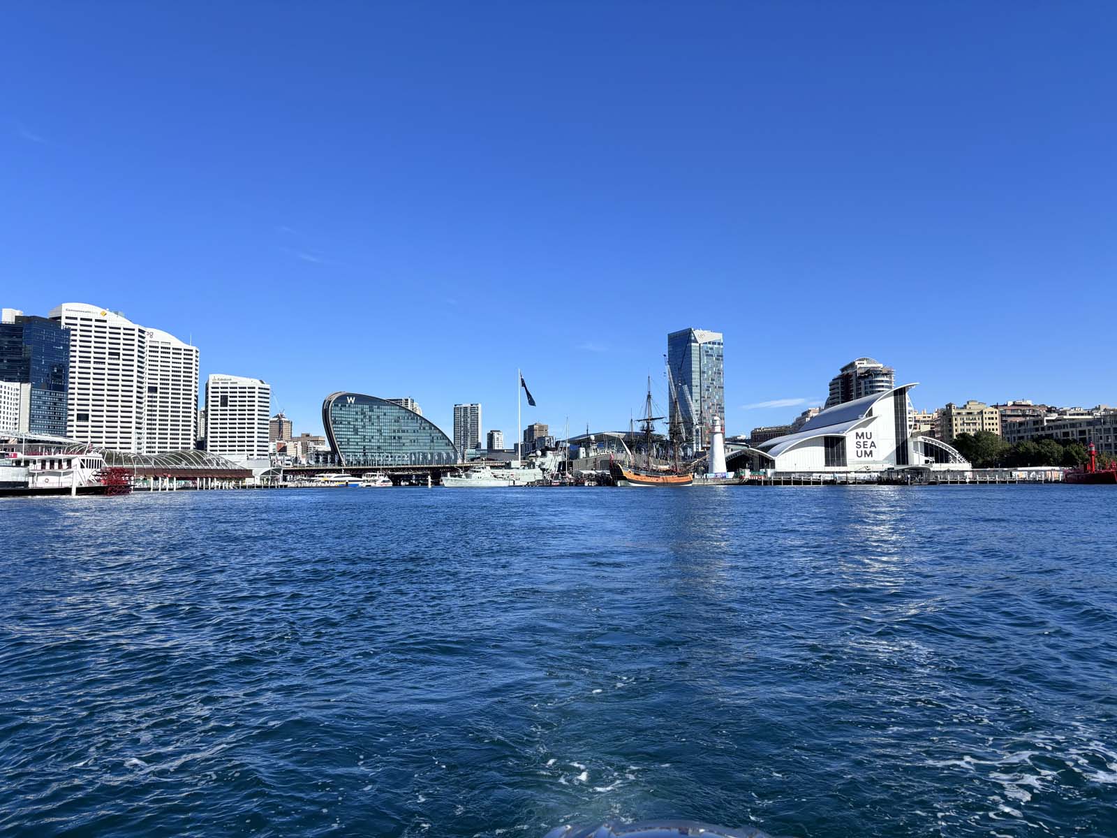 Once you’ve navigated the busy waters around the Harbour Bridge and the Opera House, you’ll turn into the quieter, sheltered area of Darling Harbour. The conditions here are typically much calmer, making it an ideal spot for docking and taking a break.